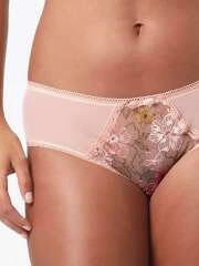 – Lingerie en tulle abricot brodé de motifs floraux multicolores