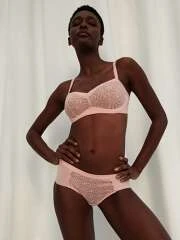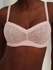 Soutien-gorge emboitant en dentelle et maille rose pâle