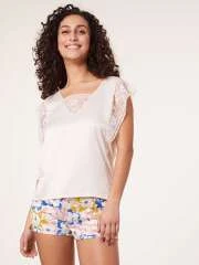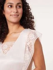 – Détail dentelle sur les manches et le décolleté